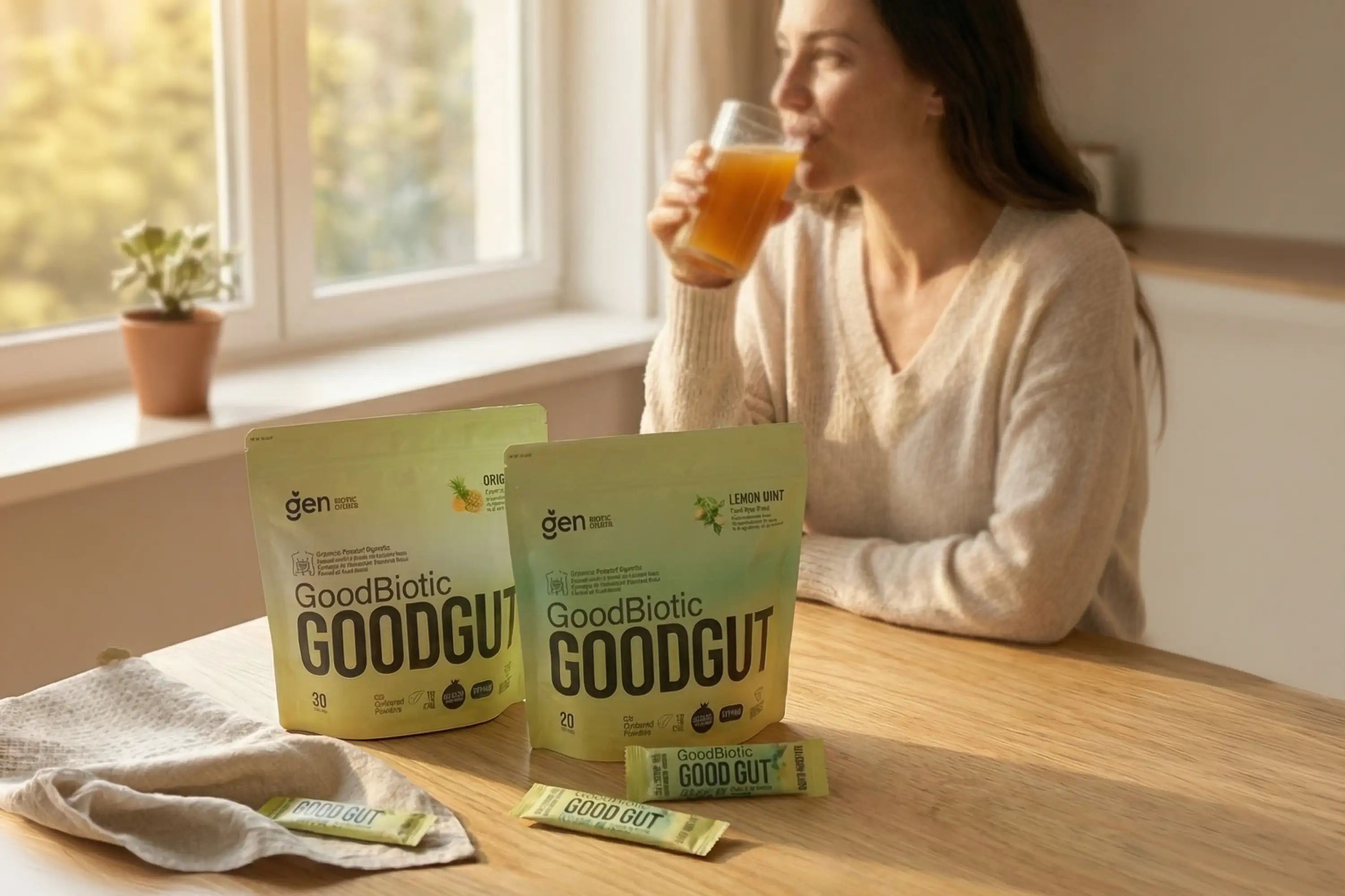GoodGut is a daily fiber and botanical blend crafted with psyllium husk, prebiotics, probiotics, and soothing herbs to support smoother digestion and restore everyday balance.